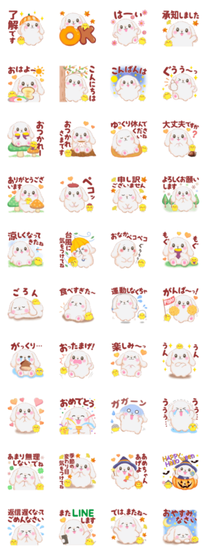 ベイビーうさぎさんの秋の日常な使えるスタンプです。めぐみん より発売