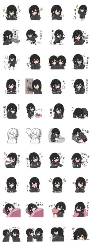 家族、友達、カップル、大切な人と使えるスタンプです!黒パーカーちゃんの第4弾紫月るな より発売