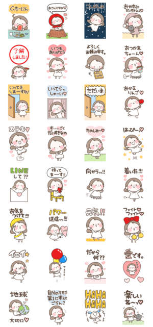 毎日使える♡まるいすたんぷ おんなのこ! スタンプ画像一覧