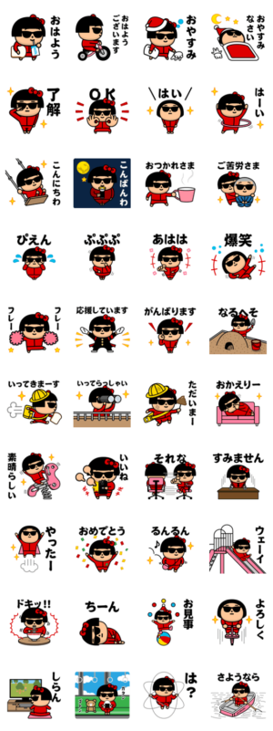 グラサンファミリー/サングラスガール/女子/娘/女の子/大人女子/毎日使える/日常会話/使いやすい/挨拶/面白い/シンプル/感情/おとな/気持ち/あいさつ/芋ジャージ