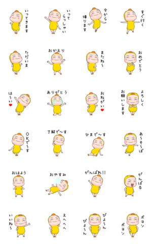 大人かわいいひよこの全身タイツちゃんのスタンプです。挨拶やお礼など日常よく使う言葉を集めました。家族や友達との連絡にどうぞ。