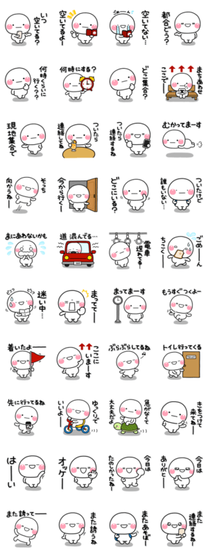 友達や家族、恋人との約束や待ち合わせに使えるしろまるのスタンプです。ずっと使える内容を揃えましたのでスタンプ初心者の方にもオススメです。【作:いしいともこ】