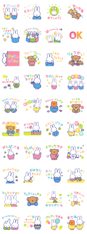 みんなを応援!ミッフィースタンプは、カラフルでとても可愛いです!ミッフィーたちにとても癒されます!
