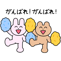 ニコニコしているうさぎとくまが応援してくれるスタンプです。毎日使えるあいさつも入っています。