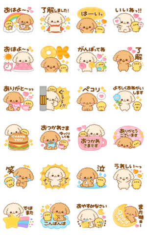 トイプードルのモカちゃんラテくんが画面いっぱいに可愛く飛び出す♡犬の日スタンプです♪ぴよたぬき♡ より発売