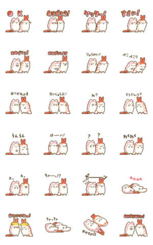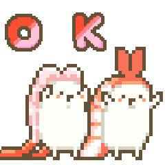 YouTubeアニメ「回転ずしくん」より、仲良しお寿司のむしえび&あまえび(通称えびーず)のドット絵アニメスタンプです!日常会話で使いやすい相槌やあいさつ中心に収録。