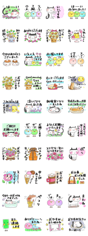 ほっこりかわいいヅラ猫ちゃんの気持ちが伝わる40個。シンプルでサクッと送れる日常使いの便利なスタンプです。(やさしい水彩/見やすい大きめ文字)Konko3 より発売
