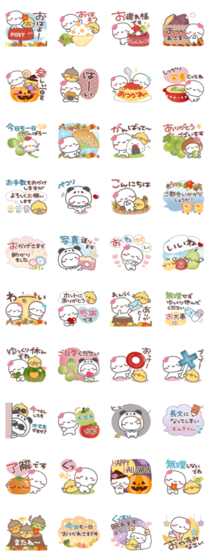 毎日使えて便利な秋のスタンプです。でか文字/気遣い/食べ物/吹き出しアルク より発売