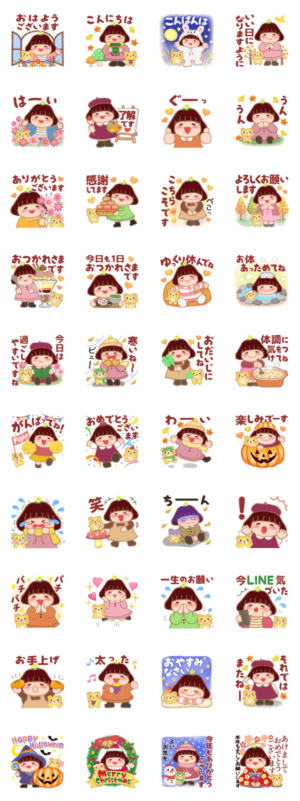 ちょっと太め女の子「でぶりん」の秋から冬の日常に使えるスタンプです。めぐみん より発売