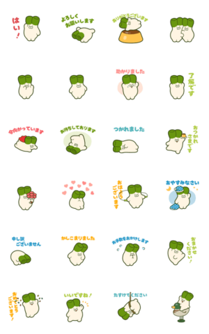 ていねいな言葉で誰にでも使える、ネギうさぎのスタンプです。うめぼしちゃん より発売