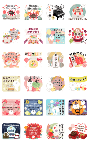 飛び出す誕生日&おめでとう&季節のお祝い スタンプ画像一覧