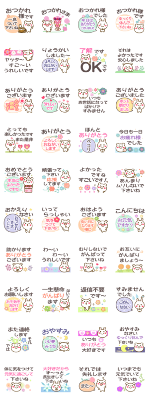 かわいい動物達【敬語❤もらってうれしい気持ちたっぷり】②花と大きい文字で見やすい長文スタンプです♪挨拶 応援や気づかいの言葉いっぱい!いぬ うさぎ くま❤作:usakazu1