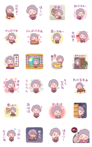 大きいから見やすい!やさしいおばあさんが気持ちを伝えるポップアップスタンプです♪よく使う挨拶返事気づかいなどが中心で使いやすいスタンプです!