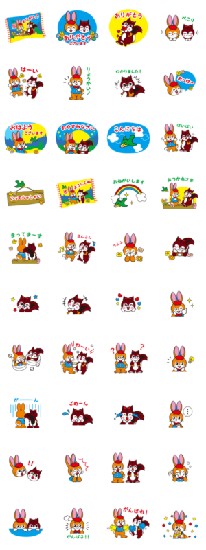 ウサギとリスのキャラクターでおなじみの「クッピーラムネ」がスタンプになって登場!日常会話で使いやすいレトロで可愛いスタンプです。