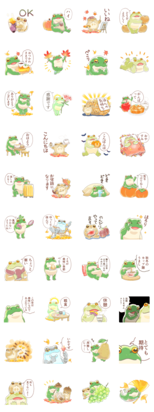 微妙に水彩画風のカエルスタンプです。秋仕様!たろ より発売
