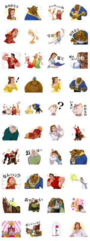 美女と野獣のかわいいスタンプ、かわいいから毎日使いたくなります