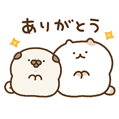 パグとねこの毎日使えるスタンプだよ。かやぬ ゆみ より発売