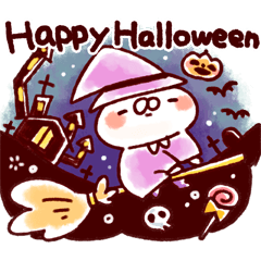 ハロウィン★飛び出す版/挨拶/基本/動く/猫/可愛い/ハロウィーン/秋/トリックオアトリート/イベント/ねことうさぎの名前スタンプシリーズ/山田まぽん作