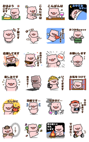 もっちりかわいいぶたさんのポップアップスタンプです♪敬語で日常的な言葉が多めなので毎日使えます◎