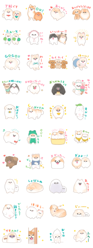 ポメラニアンのぽぽちといろんな犬たちのスタンプです。すべてのわんこが幸せに過ごせますように!ぽこ より発売