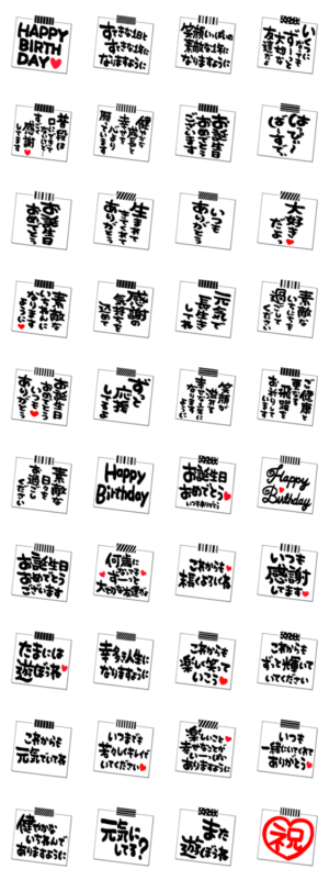 大切な人へ誕生日お祝いの言葉♡筆文字メモ スタンプ画像一覧