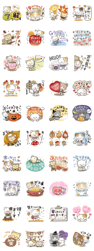猫とリスの日常で使いやすいスタンプです♪ ハロウィン、挨拶、敬語、丁寧、気づかい、水彩yopink より発売