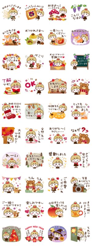【ほっこり秋冬】リボンの女の子 スタンプ画像一覧