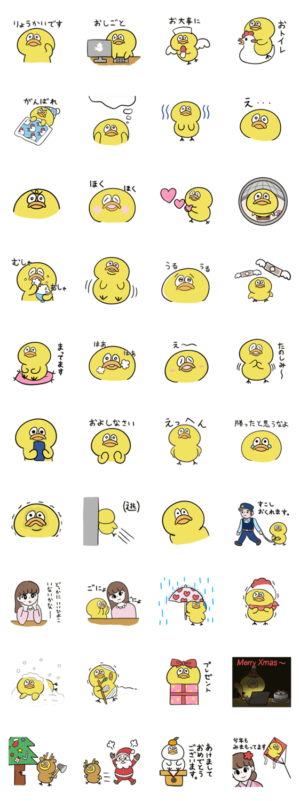 クリスマスにお正月。ご飯やトイレやお仕事にも。様々なシーンで活躍するイケてるひよこのスタンプです。ぴよ山ぴよ太 より発売