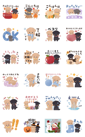 背景が動く!秋冬♡ふわもこ子犬♡トイプー スタンプ画像一覧