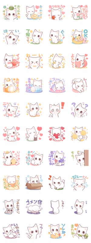 まっしろなねこさんの毎日使えるスタンプです。日常会話やリアクション、あいさつの言葉が入っています。お友達や家族、恋人との会話にも是非。佐治 より発売