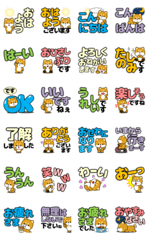 豆柴の飛び出すスタンプです。挨拶や返事など毎日便利に使えます。文字は見やすいデカ文字です。ヒサケイプリン より発売