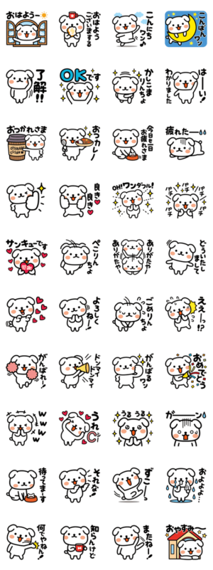 春夏秋冬毎日使える犬スタンプです。真っ白かわいいわんこ。時々、遊び心あるセリフやダジャレで癒してくれます。みーすけ より発売