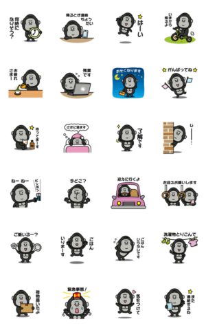ゴリラの家族の連絡用に使える言葉を集めたとっても使いやすい動くスタンプです。パン より発売