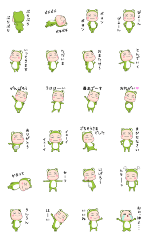 大人かわいいかえるの全身タイツちゃんがキュートに動く。そんなスタンプです。