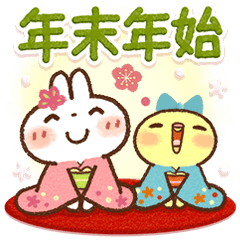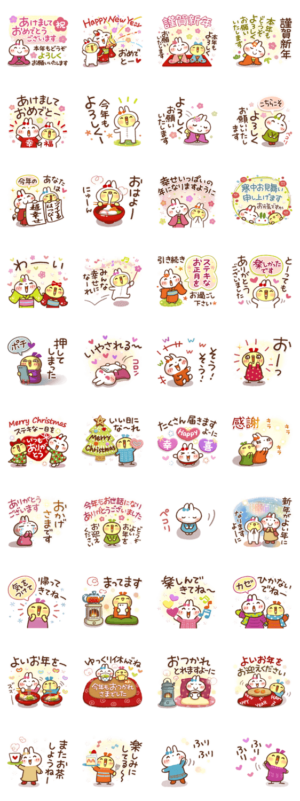 【再販】年末年始♪白うさぎさん スタンプ画像一覧