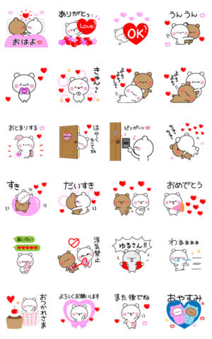 アモーレ♡くまくまシリーズ。ラブラブなカップルで使えるポップアップスタンプ。こちらは彼女、奥さん専用です。彼氏、旦那さん専用もあります。