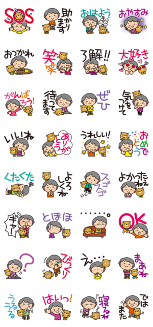 優しくてキュートなばぁばと子犬のスタンプ。大きめの文字で見やすいのでストレスなく使えます。Reiko より発売
