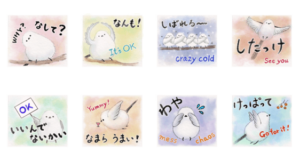 水彩画シマエナガの北海道弁スタンプです。英語表記もあり、外国人にも使いやすいです。