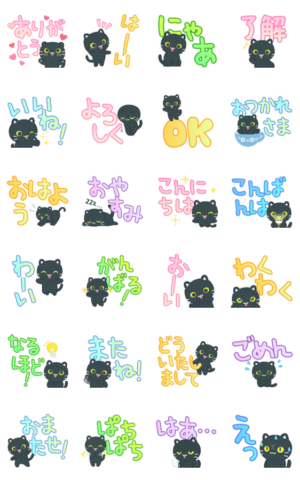 飛び出す♪でか文字!なめらかに動く黒ねこ スタンプ画像一覧