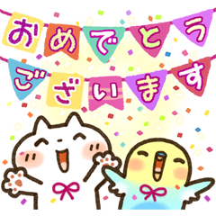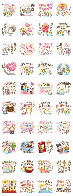 子供や職場での付き合いで、とてもよく使えそうです。お祝いのメッセージはもらうとやっぱり嬉しいので、このスタンプも添えて、一層嬉しく華やぐと思いました。