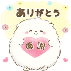 もふもふ ふわっと飛び出すうポメラニアンのスタンプです。犬・毎日・挨拶・敬語・シンプル・ほんわか癒し・カワイイ・ラブリー・誕生日・犬の日ちゃとらん より発売