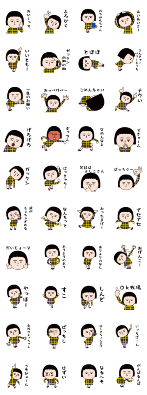 いつもの面白スタンプ(不動死語)黄黒チェックのワンピースがかわいいよ~んhitta より発売