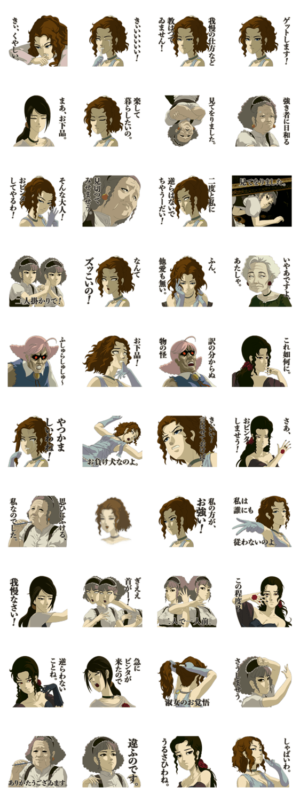 ゲヱム「薔薇と椿」の、お淑女向けおスタンプ。 ちよつとした会話に、おエレガントな雰囲気を添えてはだうでせう?NIGORO より発売
