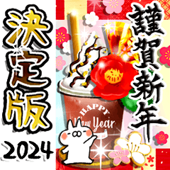 期間限定スタンプ2024年修正版/正月/お正月/年賀/年賀状/辰年/令和六年/元旦/新年/年末年始/謹賀新年/挨拶/寒中見舞い/飛び出す/ねことうさぎの名前スタンプの山田まぽん作山田まぽん/名前スタンプ より発売