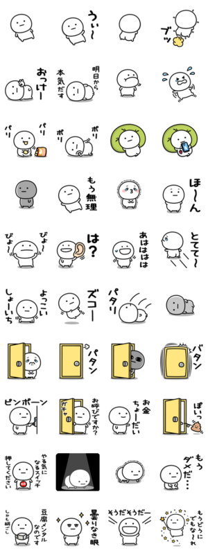 だらけた態度多めでやる気がないまるいののスタンプです。mame&co より発売