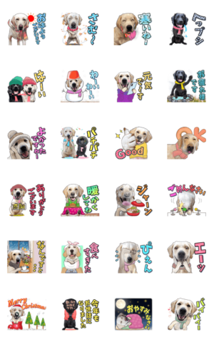 ラブラドール犬の冬スタンプが新登場!雪遊びしたり、コタツや温泉でのんびりと…冬の情景が詰まったスタンプです。冷たい冬を温かく楽しんでいただければ嬉しいです。Masajii より発売