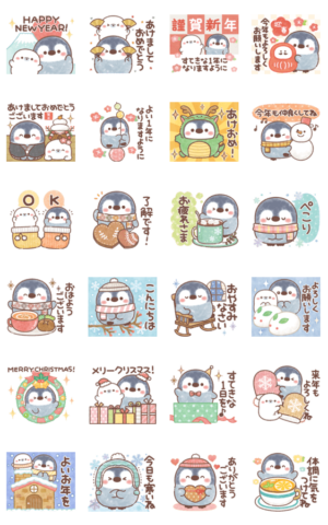 冬や年末年始に使いやすいペンちゃんのポップアップスタンプです♪(あけおめスタンプ2024対象)