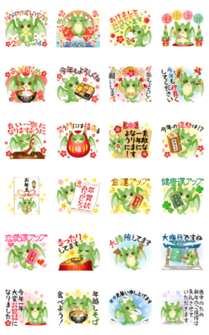 2024年辰年の年末年始の挨拶に使えるかわいい龍のお正月スタンプ。元気に飛ぶミニ龍ちゃんがトークルームを賑やかに!家族、友達、目上の方年齢問わずぜひお使いください!(あけおめスタンプ2024対象)mayurimu より発売