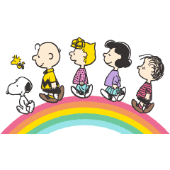 スヌーピーと仲間たちのスタンプです。お友だち同士で使える仲良し言葉を集めました。いつもは中々みられないレアキャラも探してみてね!