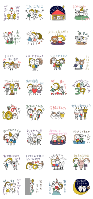 わちゃわちゃいつもくっついてます♪おはよう/おやすみ/よろしく/了解/おつかれ/などベーシックで便利なセットです。motto より発売